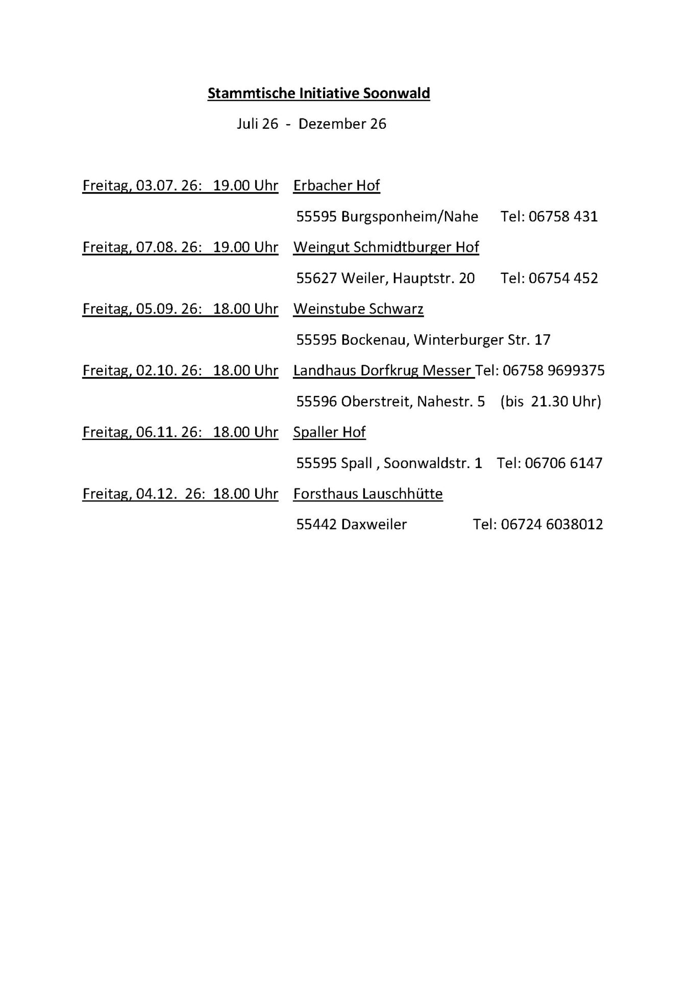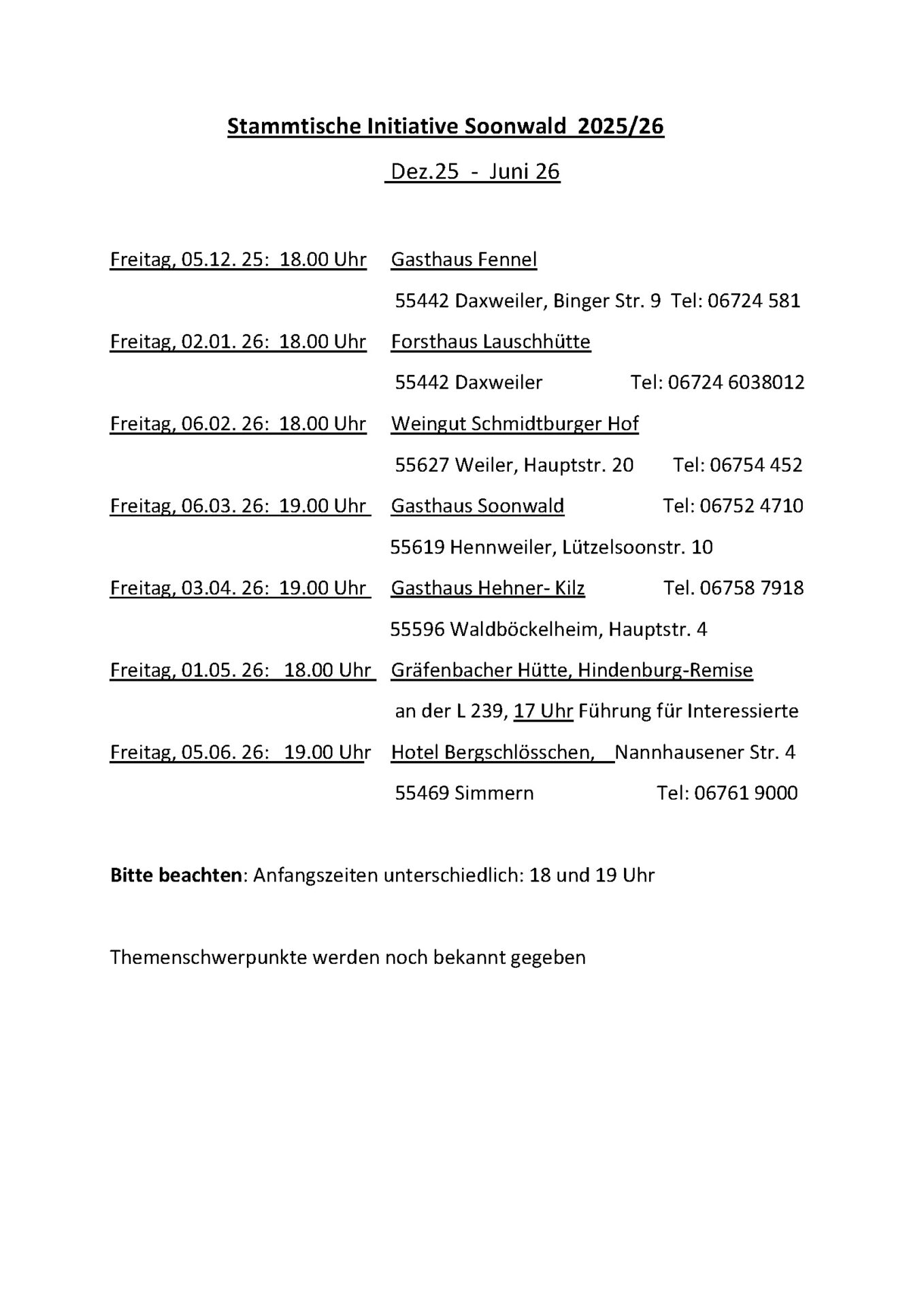 Stammtische Initiative Soonwald 2025/26 (Dez.25 – Juni 26)